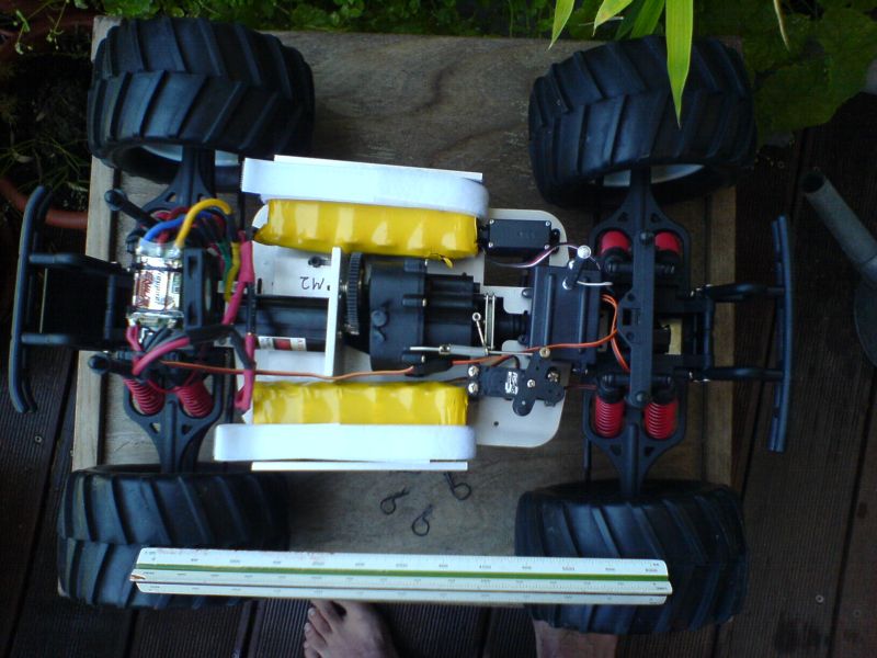Es stammt ursprünglich von Traxxas' T-Maxx ab, irgendwann bekam ihn erst Tamiya in die Formen, und zum Schluss Carson (dort war es dann der "Heat"