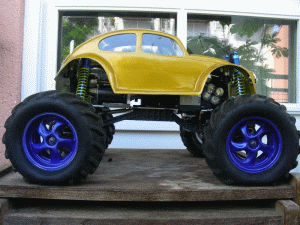 Die Käferkarosserie ist inzwischen auch fertig geworden, und sie sieht richtig hübsch aus, finde ich.