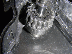 Nach dem Öffnen des Getriebes offenbarte sich sehr schnell die Ursache: Karies im fortgeschrittenen Stadium...