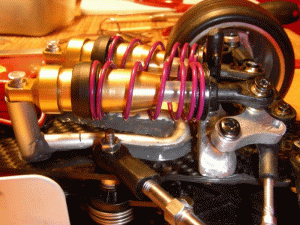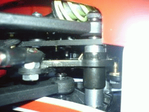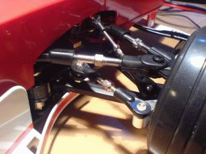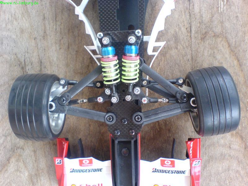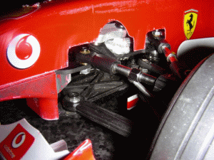 Etwas unschön ist die Konstruktion der Federbeine/ Dämpfer am F2004 gelöst.