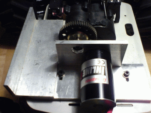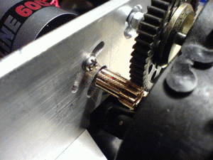 Der Motor ist schwenkbar gelagert, um verschieden grosse Hauptzahnräder oder Ritzel einsetzen zu können.