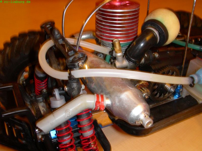 Ich habe einfach einen Satz Roll-Bar-Mounts (PD1492) unterhalb des Resos montiert, und dann einen Bügel aus 3mm-Federstahldraht gebogen, und am bereits vorhandenen Überrollbügel mit Hartlot angelötet.