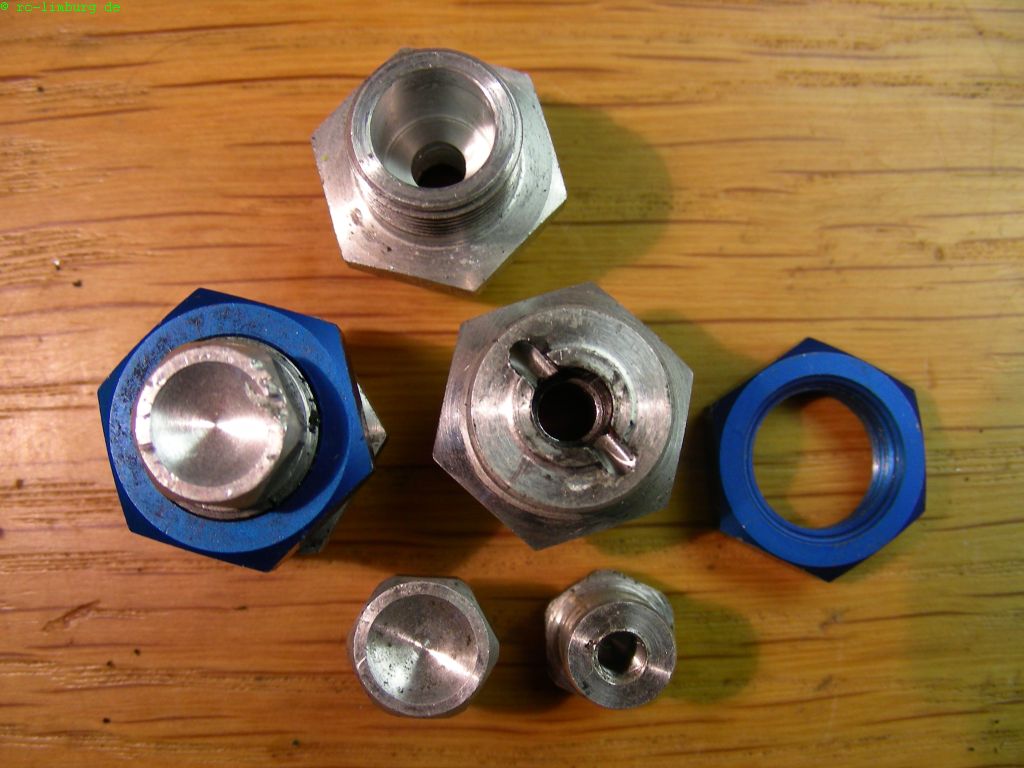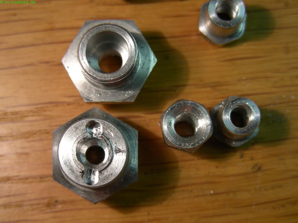 Sie werden längs durchbohrt, auf 4,3mm aufgebohrt, und ein Gewinde M5 eingeschnitten.