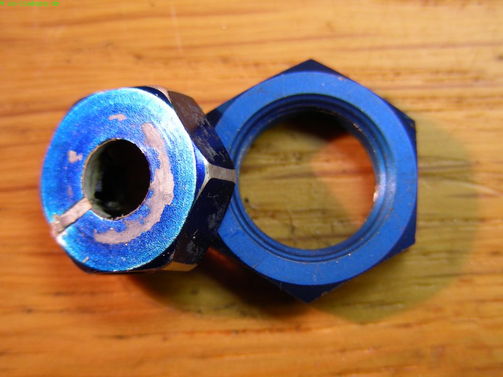 sondern die Alu-Radmitnehmer sich rundgedreht haben, so daß die Räder gar keinen Halt mehr auf den Mitnehmern finden.