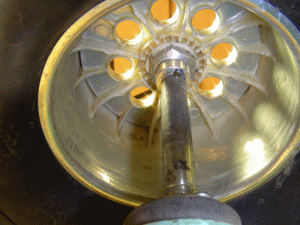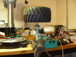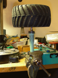 Dann die Felge auf den Mitnehmer stecken, und warten, bis der Kunstoff anfängt,