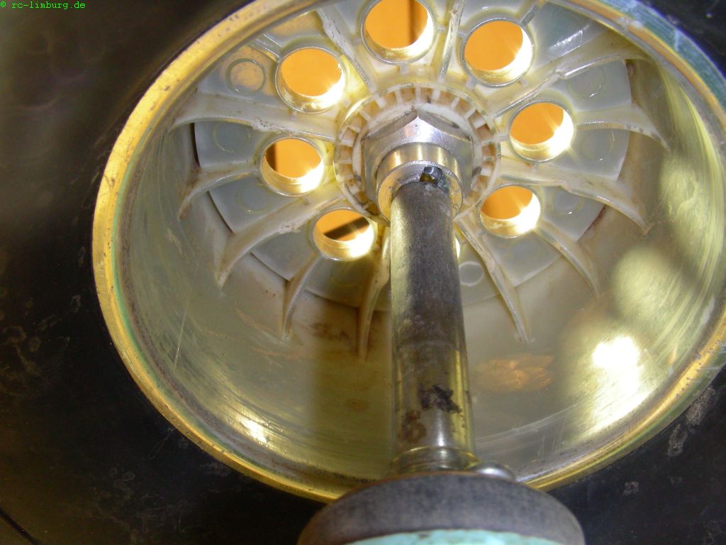 Diesmal ist es etwas komplizierter, der Mitnehmer muß (heiß wie er ist, mit einer Zange packen)