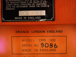 Der Verstärker ist auf ein Baudatum irgendwo zwischen 1970 und 1972 zu datieren, er stammt aus einer der ersten Serien von Orange.