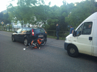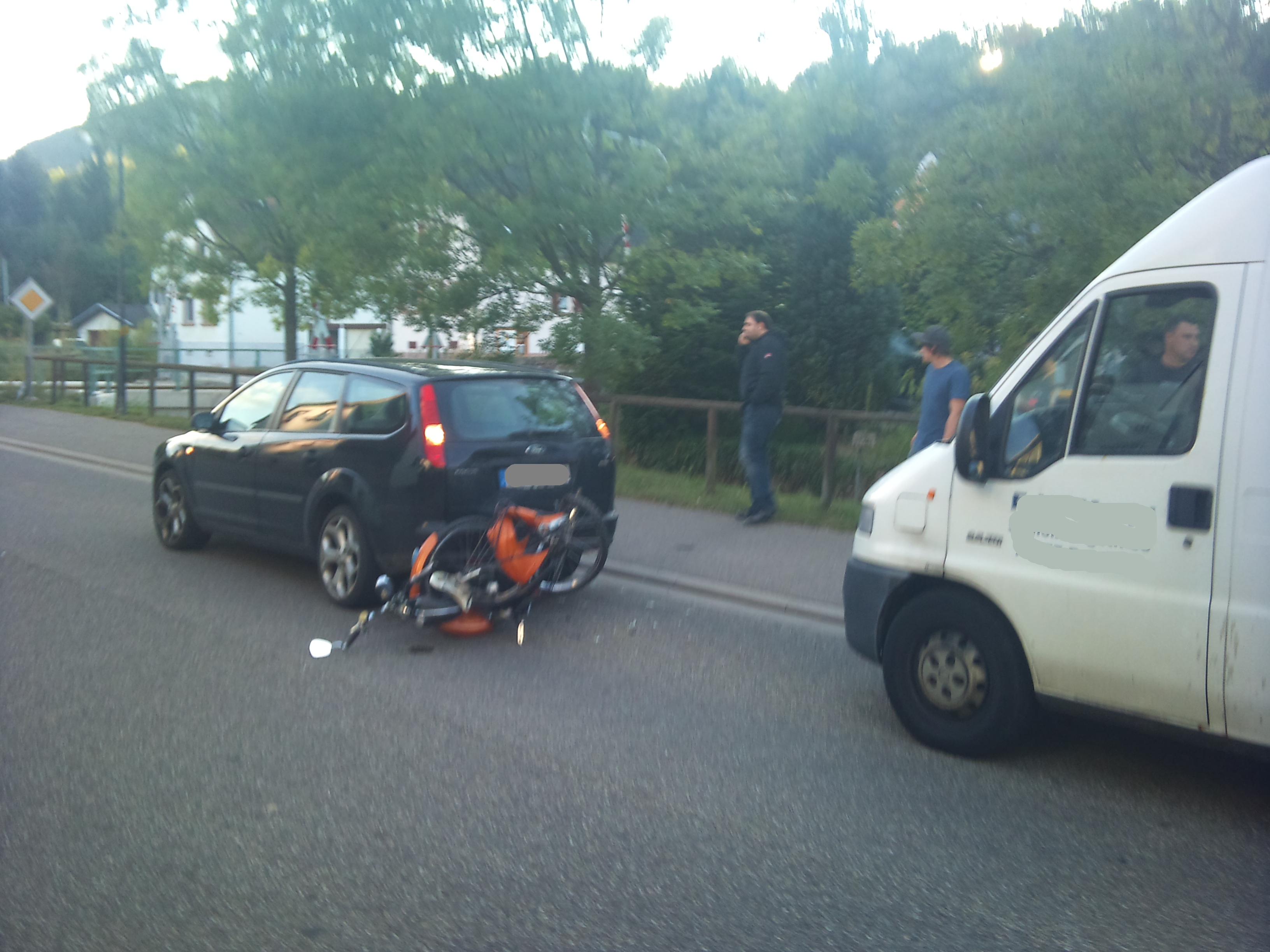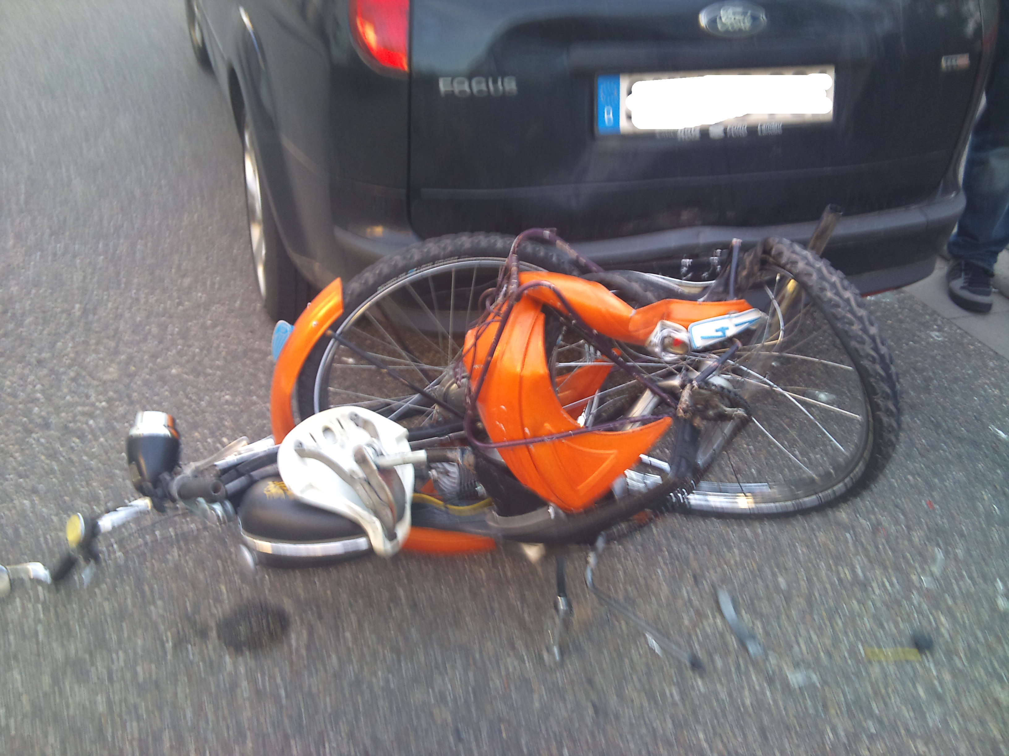 Der Fahrer sagte zu mir, er habe mich nicht gesehen (kein Wunder, hatte er doch an seiner Beifahrerin rumgefummelt, soviel konnte ich bei dem kurzen Blick in den Spiegel vor dem Aufschlag noch sehen), der Polizei sagte er, die Bremse habe nicht funktioniert...(der Gutachter bestätigte später, die Bremse sei einwandfrei funktionstüchtig, sei aber nicht benutzt worden)