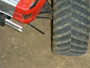 Mitten im Rennen bricht nach einer unschönen Landung eine Spurstange...