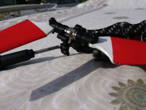 Insgesamt arbeitet das Fahrwerk jetzt so gut, dass man den Heli (mit Akku, aber demontierten Hauptrotorblättern) aus gut 1m Höhe fallen lassen kann, ohne dass das Fahrwerk durchschlägt!