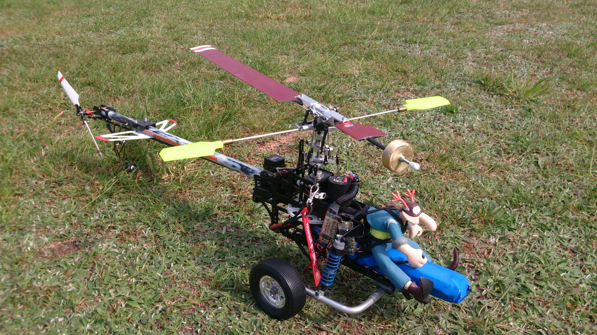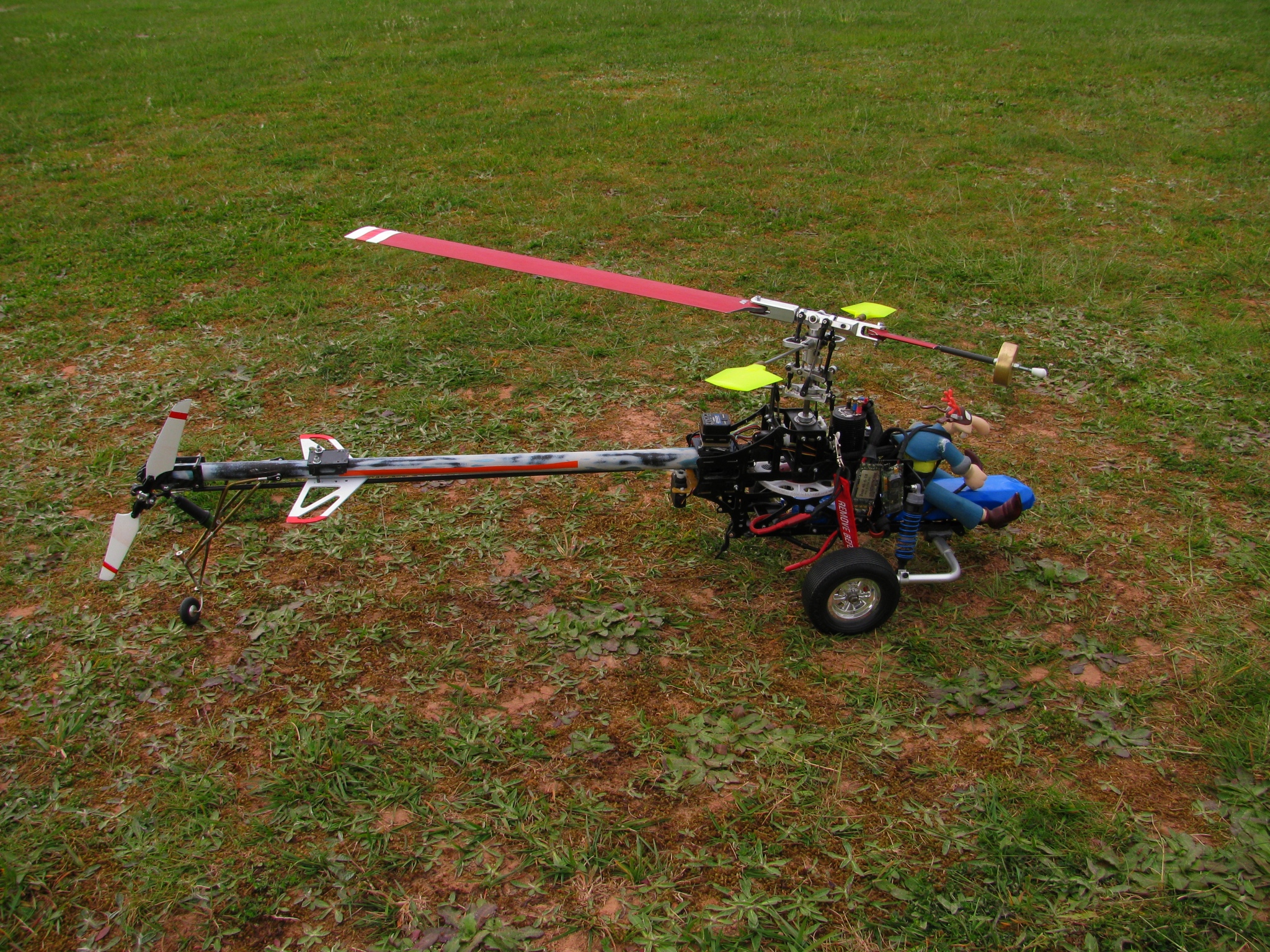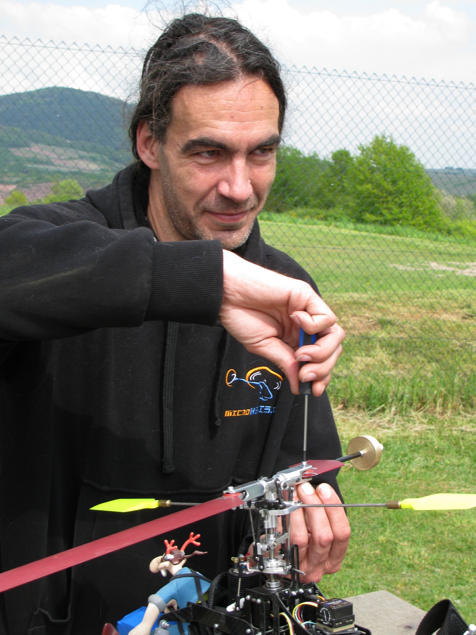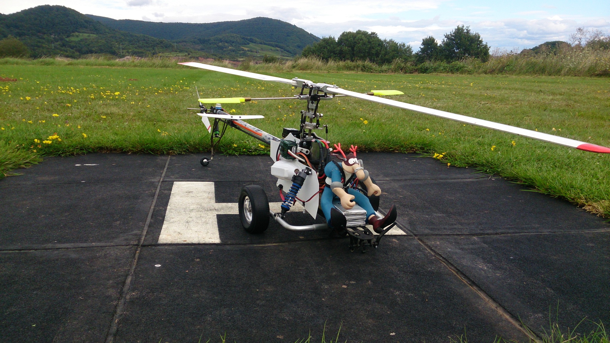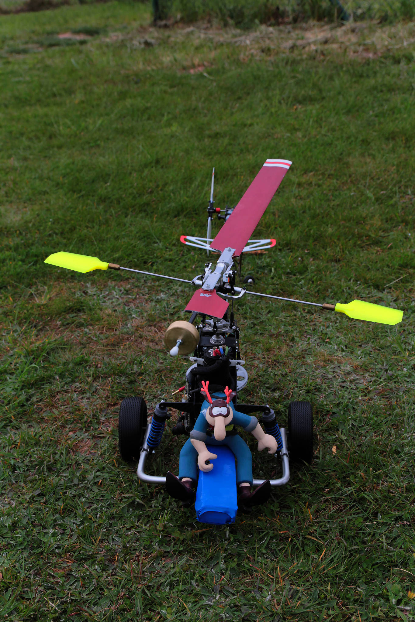 Als ich damit das erste Mal auf den Platz kam, hatte ich nur ein Rotorblatt in der Hand, und dann "plötzlich festgestellt", dass ich das zweite daheim vergessen hätte... sofort bei den Kollegen hektisches Gewusel am Platz, ob einer für Werner passende Blätter hätte. Hat natürlich niemand, der ECO8 hat schmalere Blattwurzeln, als der T-Rex...