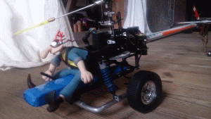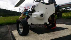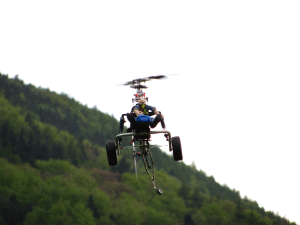 Dreht man jetzt zwecks Änderung der Fahrtrichtung (nein, ich baue immer noch keinen Wurstblinker an!) das Heck, bleibt die Rotorebene natürlich in der ursprünglichen Richtung stehen, und es braucht eine leichte Eingabe auf Roll.