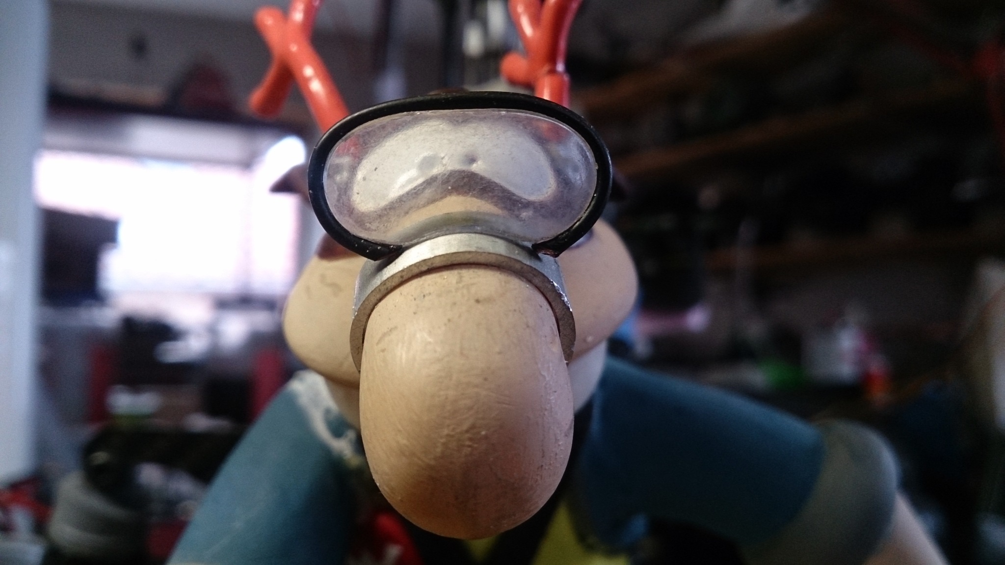 Dann habe ich mal etwas für die Sicherheit des Piloten getan. Angegurtet ist er schon eine Weile, aber jetzt bekam er auch mal noch einen Augenschutz. Natürlich nach Werner-Art.